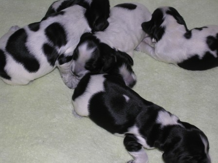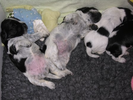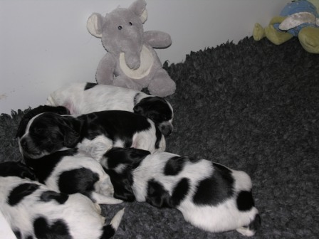 8/4-09 Valparna 6 veckor gamla. Alla valpar är tingade.