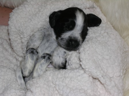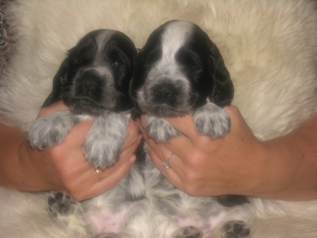 VÄNTAR VALPAR VECKA 48. HUGO OCH ELSY LÄMNAR BLUE ROAN, VIT/SVART