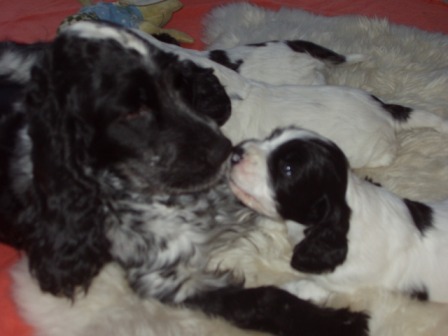 13/4-07 Tess och Alex valpar är nu födda. Valparna en vecka gamla.